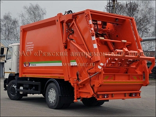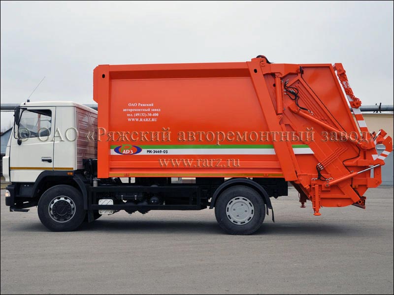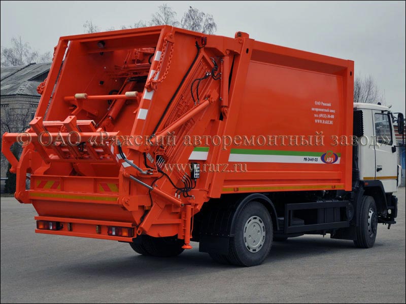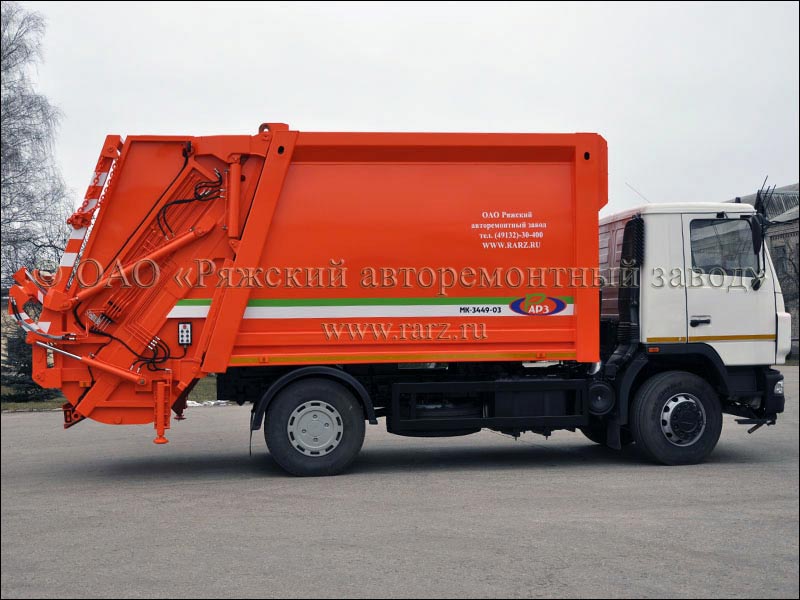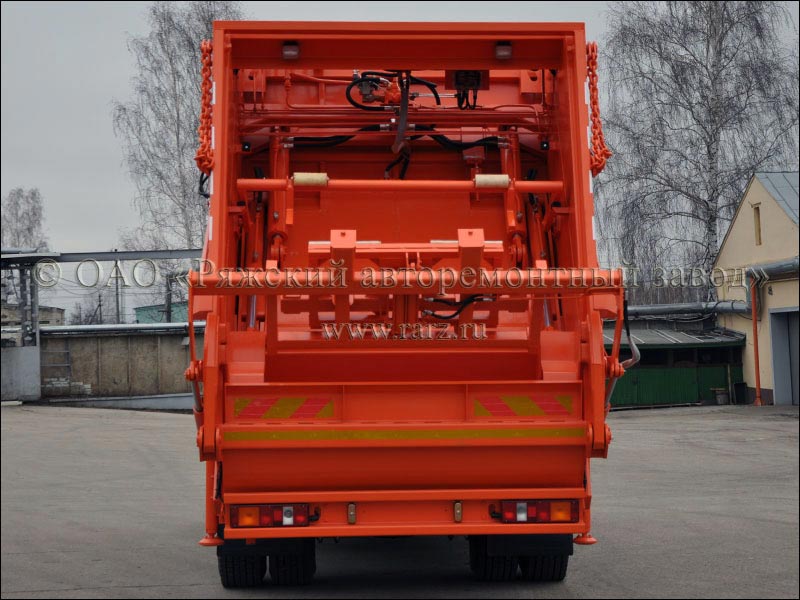Мусоровоз с механизированной задней загрузкой с увеличенной вместимостью кузова и портальным погрузчиком